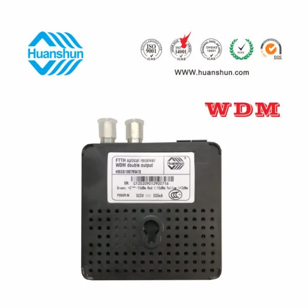 環順的HSGS10076W/2光接收機是專為CATV網絡的FTTH 應用而設計的入戶型光接收機。具有結構小巧緊湊、式樣美觀、 應用方便等 特點,在高達1000Mhz的帶寬下能夠提供穩定的輸出電平和優異的性能指標,具有極寬的光功率工作范圍。