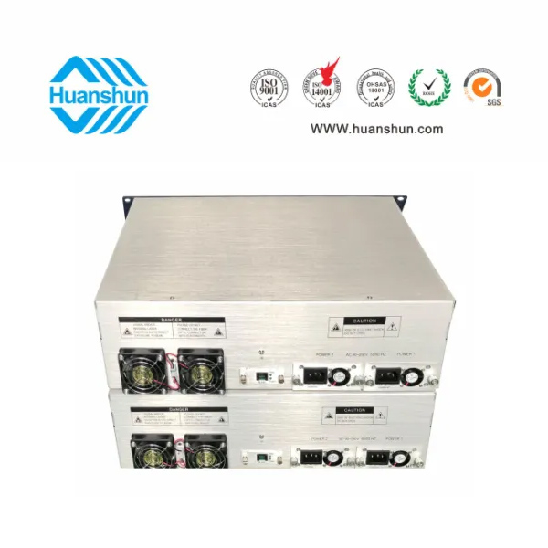 大功率光纖放大器EYDFA | YGF1564-16C | 19 " 2U/3U標(biāo)準(zhǔn)機(jī)箱,-5 ~ +10 d Bm輸入,64路標(biāo)稱規(guī)格(16、17、18、19、20、21dBm)放大輸出,并支持下調(diào)-2dB,安全連接模式,NF ≤ 5dB(0dBm時);內(nèi)置FWDM合波器,插播損耗 ≤ 1dB;雙模塊熱插撥電源,AC90 ~ 255V或DC-48V供電,RJ45標(biāo)準(zhǔn)網(wǎng)管(支持SNMP、WEB) |