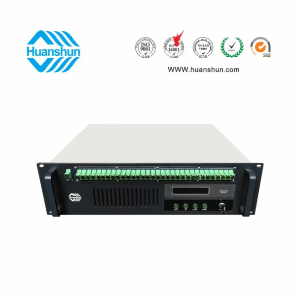 19 " 2U/3U標準機箱,-5 ~ +10 d Bm輸入,32路標稱規格(16、17、18、19、20、21、22、23、24dBm)放大輸出,并支持下調-2dB,安全連接模式,NF ≤ 5dB(0dBm時);內置FWDM合波器,插播損耗 ≤ 1dB;雙模塊熱插撥電源,AC90 ~ 255V或DC-48V供電,RJ45標準網管(支持SNMP、WEB)